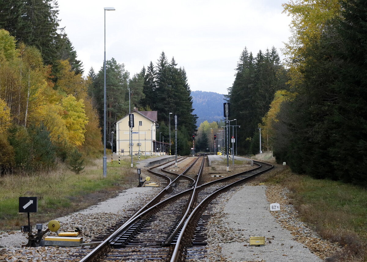 Hier in Nové Údolí ist die Bahnwelt zu Ende. Strecke Nové Údolí - Volary -Číčenice.
