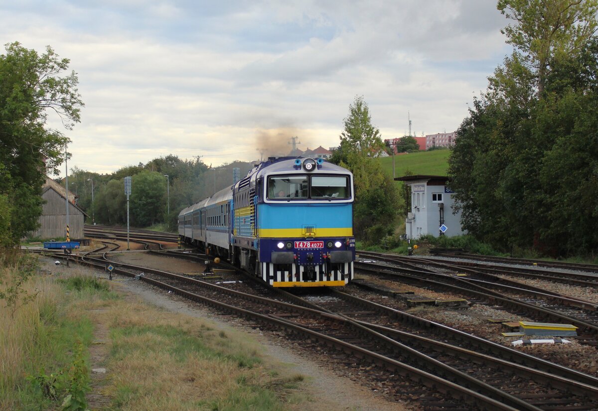 T 478 4077 als R 630 zu sehen am 28.09.24 bei der Ausfahrt in Náměšť nad Oslavou.