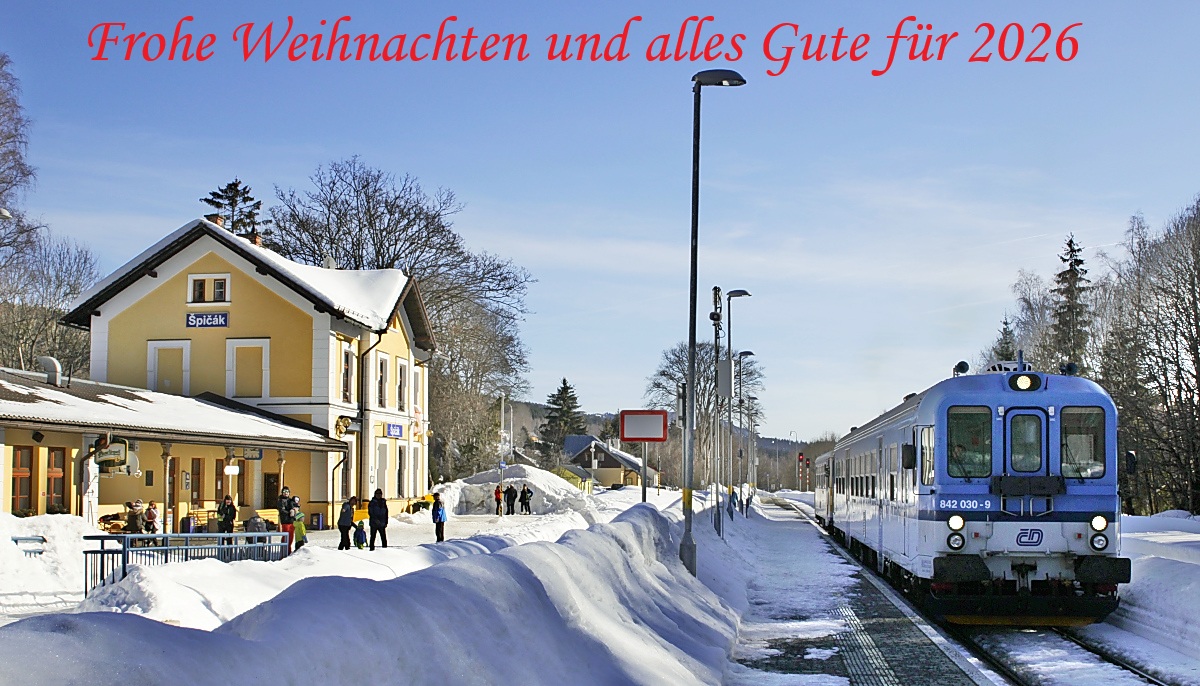 wünsche ich Euch mit diesem Bild vom Bahnhof Spicak (Spitzberg) im Böhmerwald (16.02.2019)