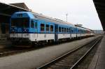 843 025 mit einer bunten Wagengarnitur am Haken am 14.05.2011 im Bahnhof Liberec.