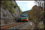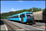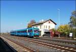 Der Nahverkehr auf der Trat 160 Plzen Zatec wird von der GW Train betrieben. Dazu fahren 845er-Triebwagen in dem GW Train Design. Ein OS konnte am 27.03.2025 bei Vroutek auf dem Weg nach Most