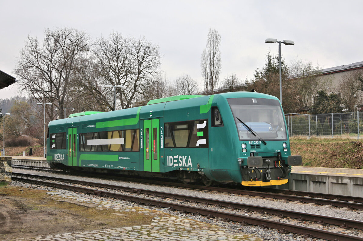 GWTrain VT 841077-7 wartet hier am 31.3.2026 um 11.15 Uhr auf Fahrgäste im Bahnhof Cesky Krumlov.