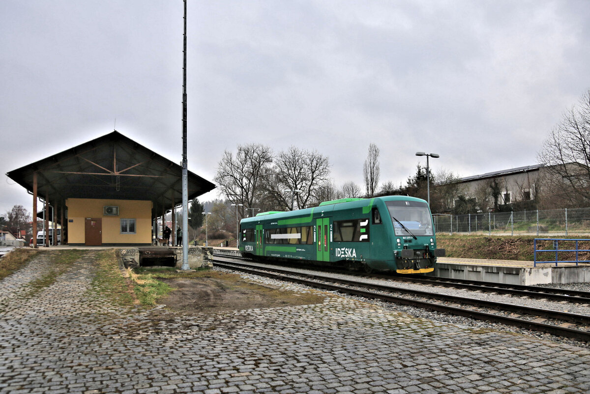 845 413 Triebwagen wartet im Bahnhof von Volary CZ am 19.2.26.