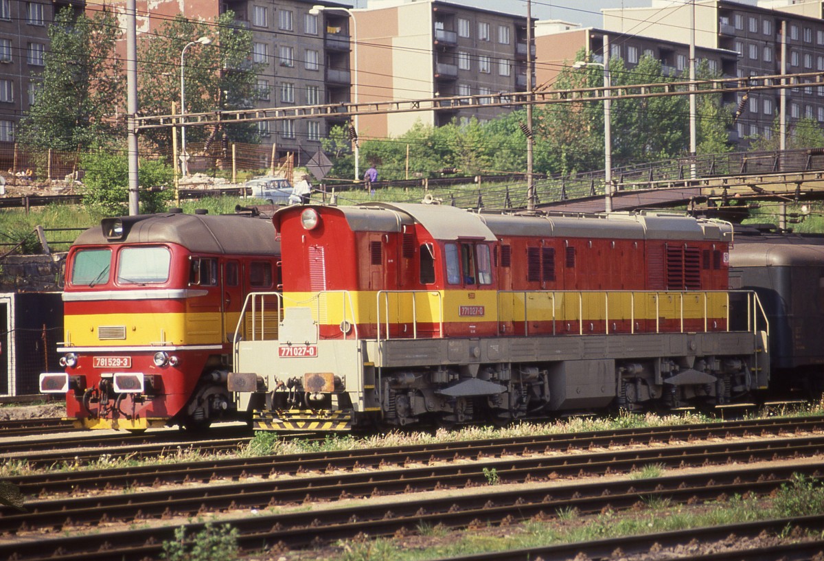Am 5.6.1991 warten im Hauptbahnhof von Karlovy Vary der Sergej 781529 und die Cmellak 771027 auf ihren nächsten Einsatz.