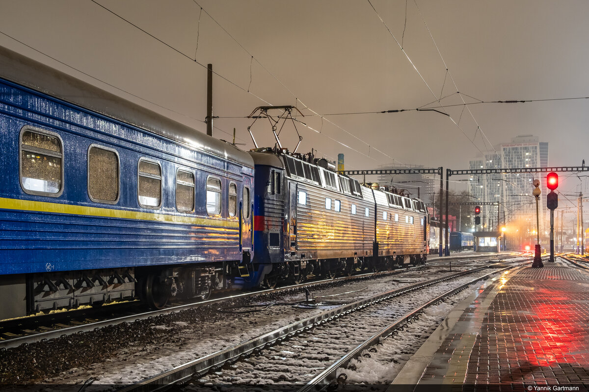 Yannik, das ist EP9P-194, zugewiesen dem Depot Ternopil, fährt auf der Strecke Lemberg - Ternopil (auf der Tafel steht „Ternopil“)