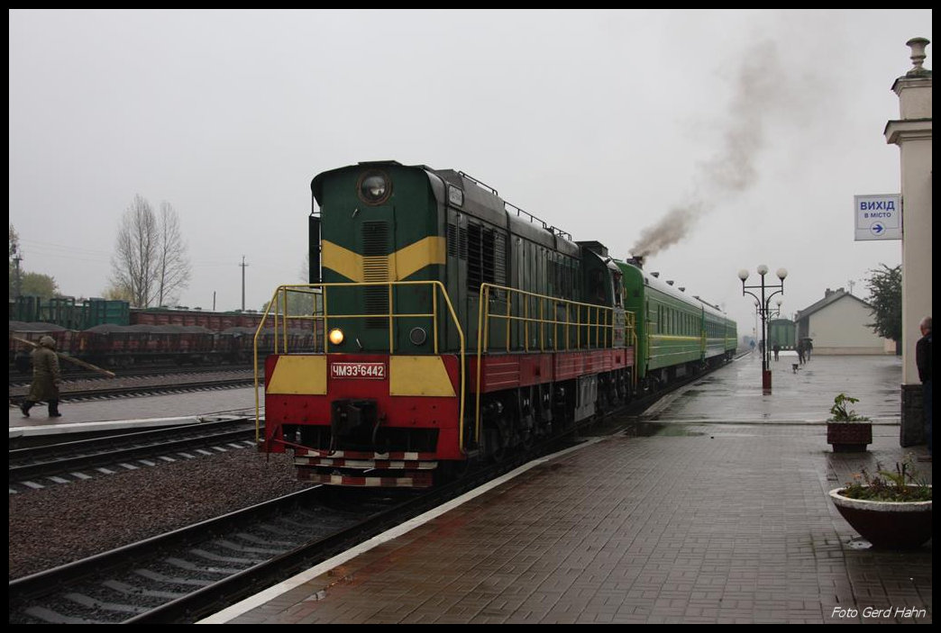 Am Morgen des 13.10.2016 kam die Altbau 2TE10M-2834 mit einem schweren Güterzug durch den Bahnhof Kolomeia.