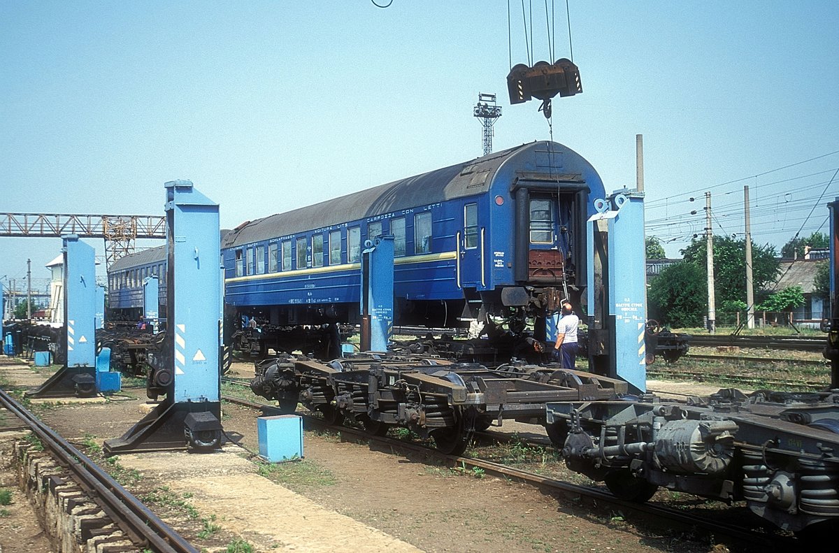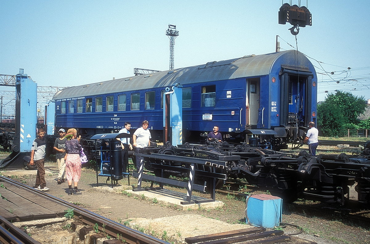 Ein ER2-869 Elektrotriebwagen fährt am 1.10.2009 in den Grenz- bzw. Endbahnhof Tschop ein. In Tschop enden die ukrainischen Züge. Der Bahnhof ist Umspurbahnhof von Breit- auf Normalspur.