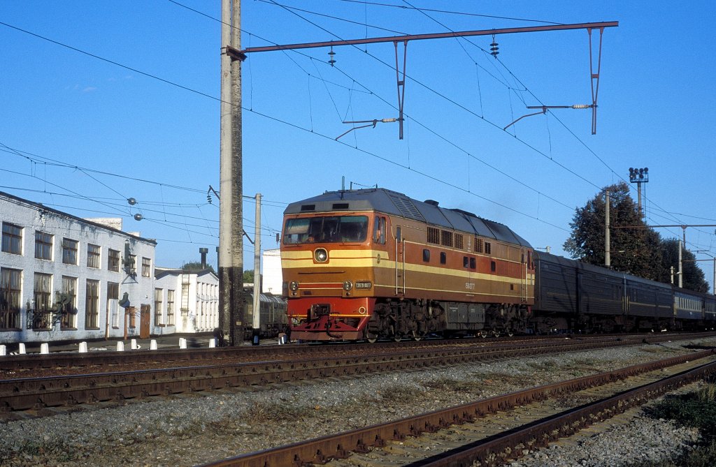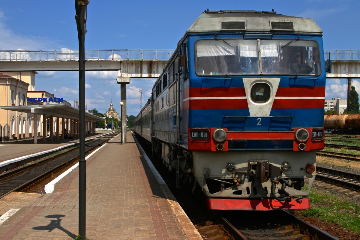 TEP70-0076 der ukrainischen Eisenbahngesellschaft im Bahnhof von Cherkassy am 02.07.2018.