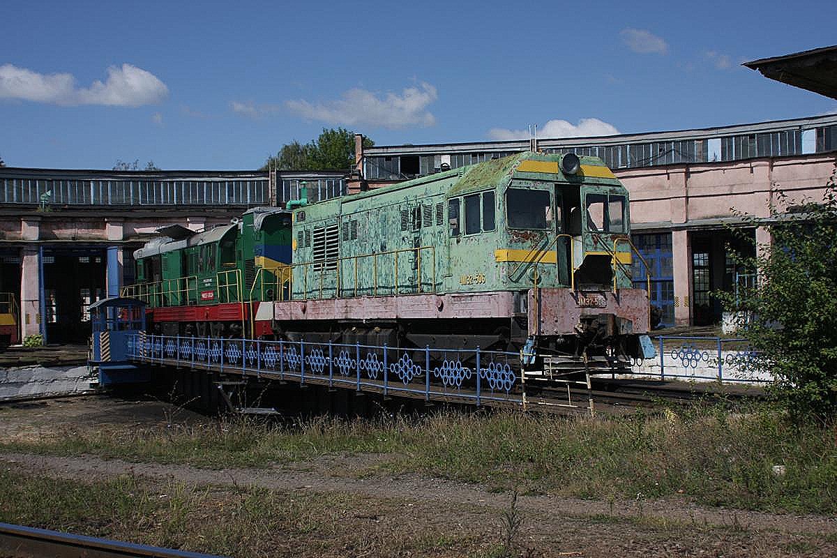 Ein Hector, der dringend wieder eines Neuanstrichs bedarf,zieht eine Cmellak auf die Drehscheibe des Depot Tschop. Die Aufnahme entstand am 1.10.2009. Gerd Hahn