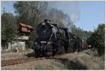 Nachtparade in Benešov u Prahy anlässlich des "Festival parních lokomotiv - Steam 50" am 21.9.2019 mit den beiden Gastlokomotiven MAV 204 (MÁV-Baureihe 220) aus Budapest (HU) und 555 3008 aus dem Depot Bratislava (SK).