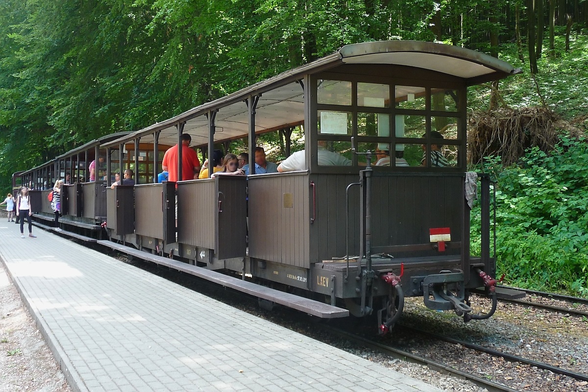 Mit solchen "Cabriowagen" hätte sich eigentlich eine Touristenbahn betreiben lassen sollen, wie es ja mehrere in Ungarn gibt. Doch 2009 wurde der Betrieb komplett eingestellt.