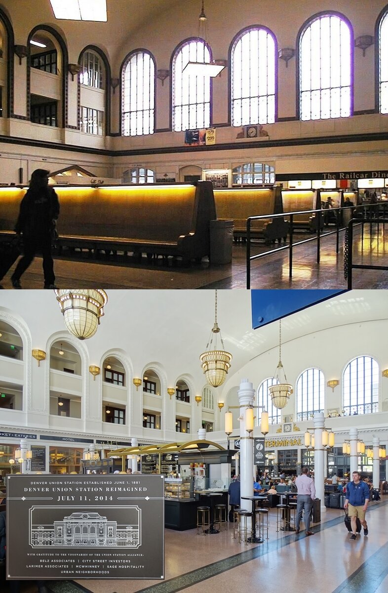 Straßenansicht der Denver Union Station am 15.5.2019, die sich seit meinem ersten Besuch 1999 nicht verändert hat. Nur gab es damals rechts und dahinter noch keine Häuser.