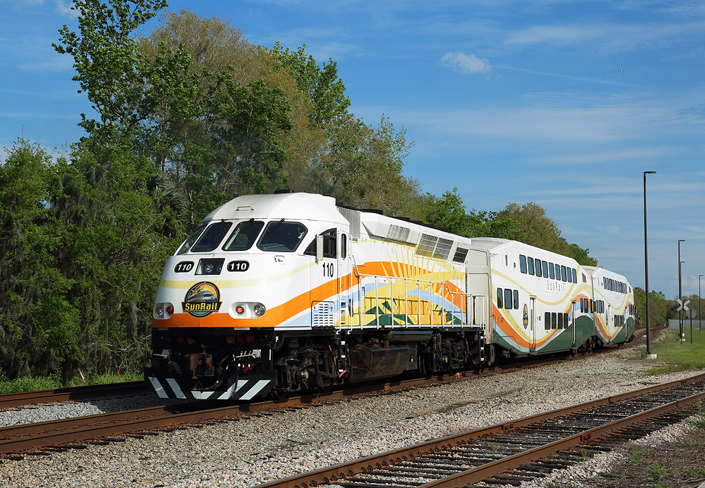 825 departs West Palm Beach whilst working Tri-Rail train P635, 1600 Mangonia Park - Miami Airport, 28 February 2019