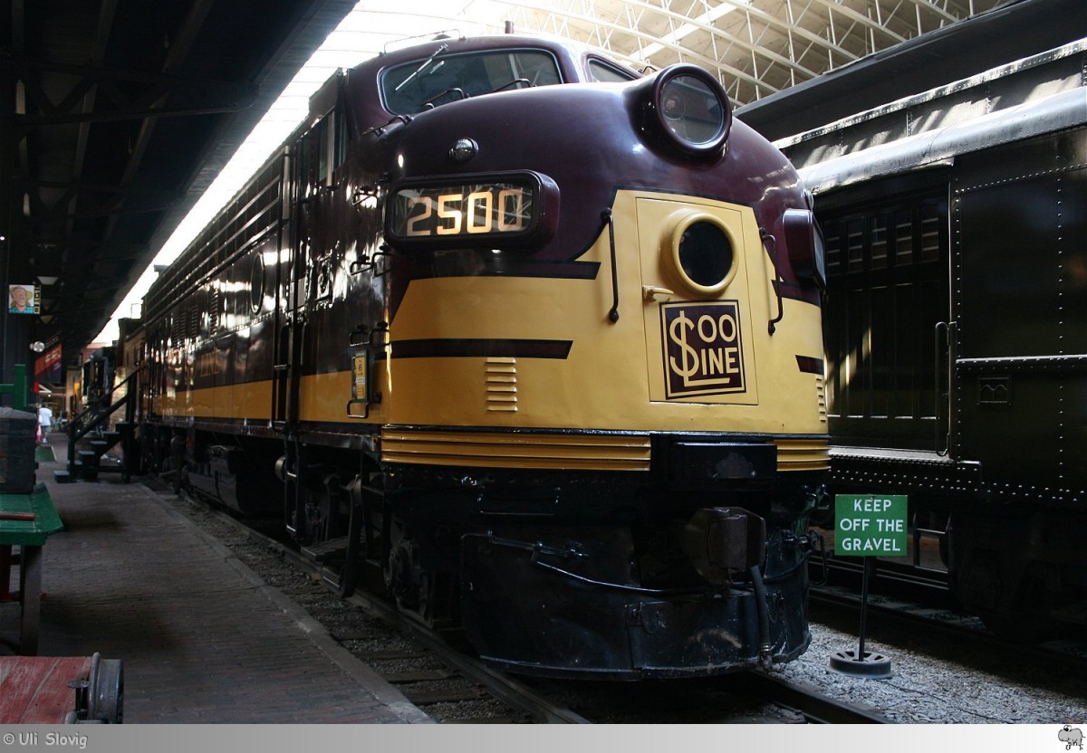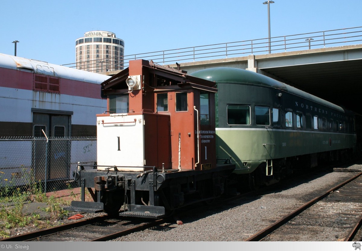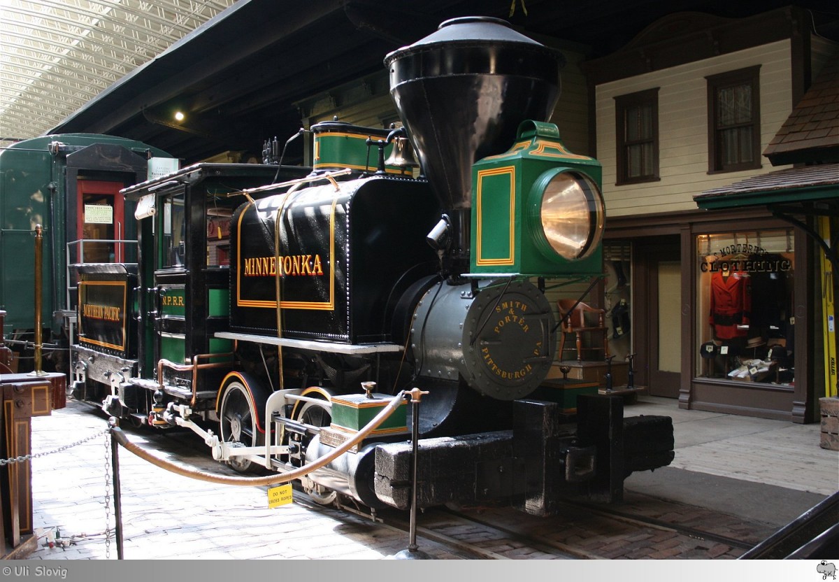 Lake Superior Railroad Museum in Duluth, Minnesota / USA: Baldwin Locomotive Works - Duluth, Missabe and Iron Range Steam Locomotive No. 227 von 1941 und dahinter General Electric - Milwaukee Road Electric Locomotive No. 10200 gebaut ab 1915. Aufgenommen am 30. August 2013.