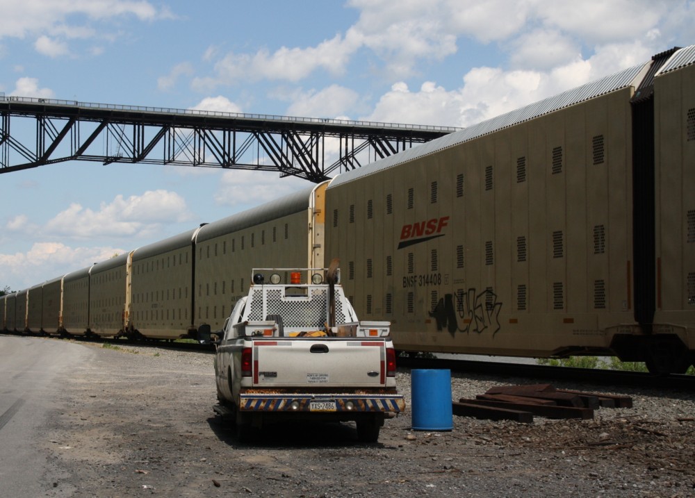 Tieflade-Wagen #470245 der PRR im Railroaders Memorial Museum in Altoona, PA (5.6.09)