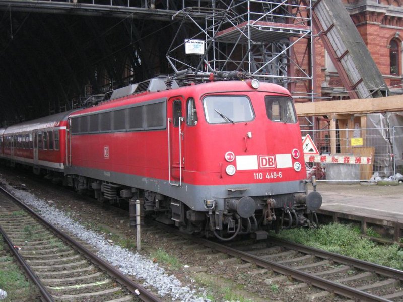 110 449 im Bremer Hbf. Noch sind diese Lokomotiven in HB stets anzutreffen. Wie lange noch? Foto vom 03.11.2008.
