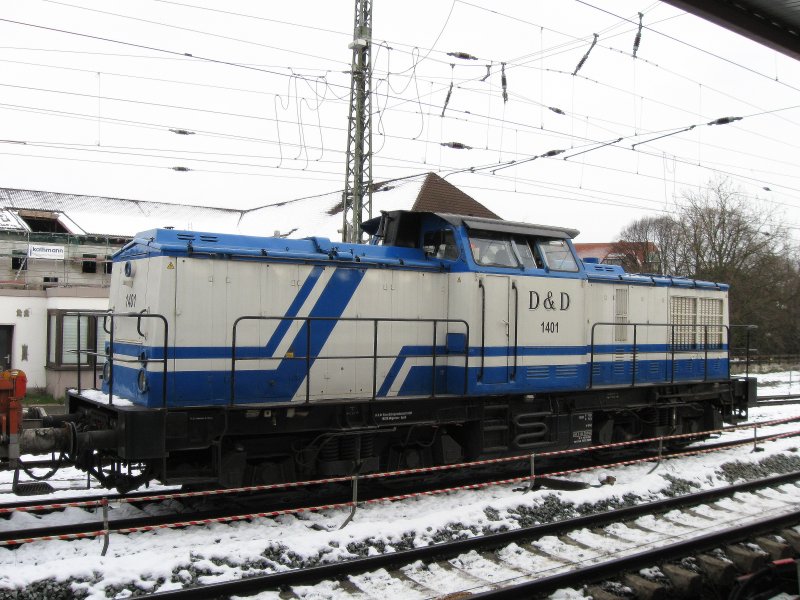 Bei Umbauarbeiten des Bahnsteiges Gleis 10 im Bremer Hbf. macht sich die Lok D&D 1401 mit Verschubarbeiten nützlich. Foto: 25.11.2008