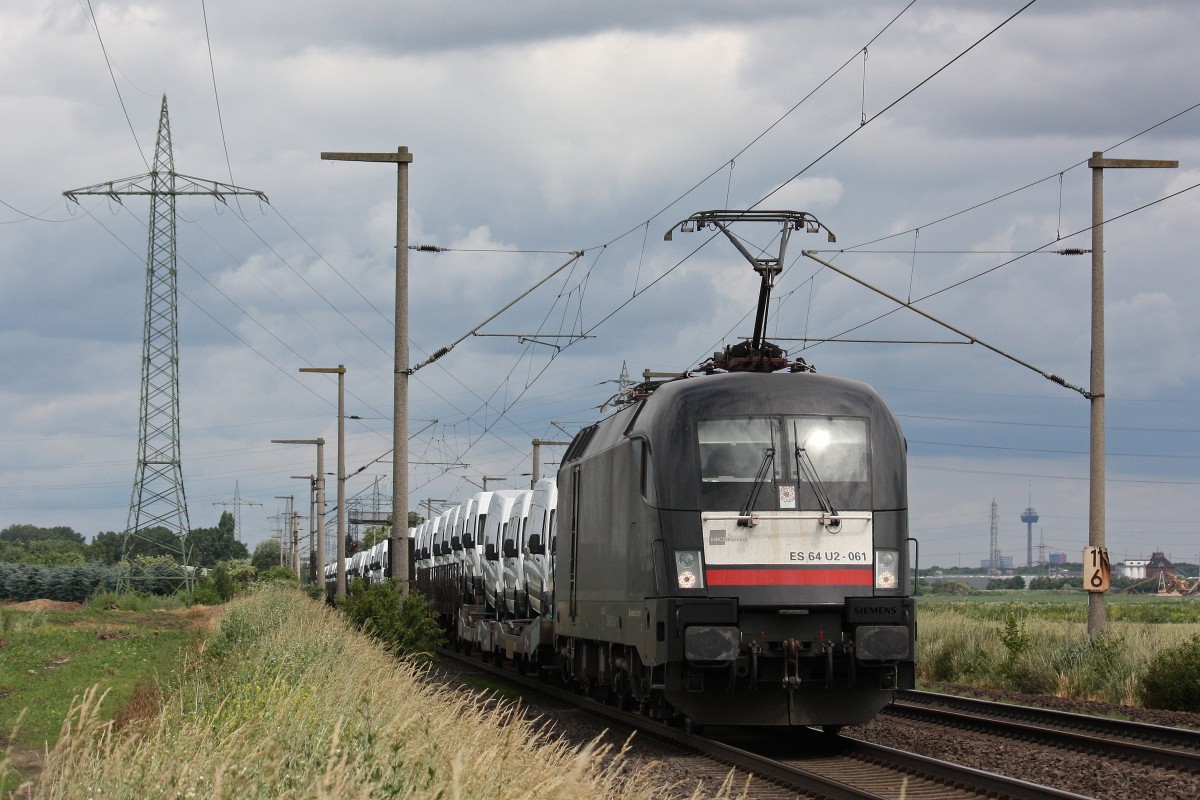 MRCE/LTE ES 64 U2-061 am 22.6.13 mit einem Mercedes Sprinterzug von Neuss Gbf nach Passau bei Brühl.