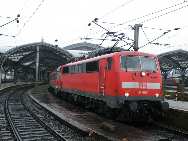 111 012-1 hängt vor dem Steuerwagen eines N-Leerparks, der als Lr von Köln Bbf kommend im Kölner Hbf einen kurzen Halt einlegt, um später wieder in Richtung Hohenzollernbrücke loszufahren. Köln Hbf 22. Februar 2009
