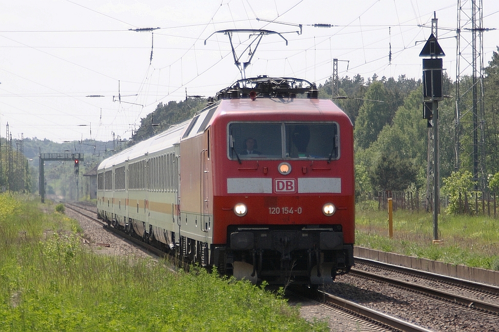 120 154 ist mit einem IC in Richtung Angermünde unterwegs am 29.05.2010 in Chorin