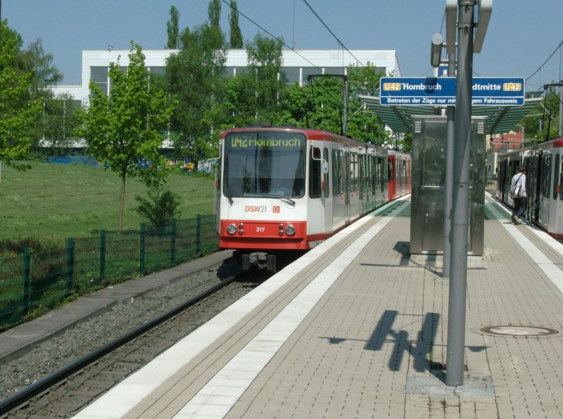 TW317(Dsw21)an der Haltestelle Hombruch Hallenbad auf den Weg zur Endhaltestelle Grotenbachstraße am 20.04.09 .