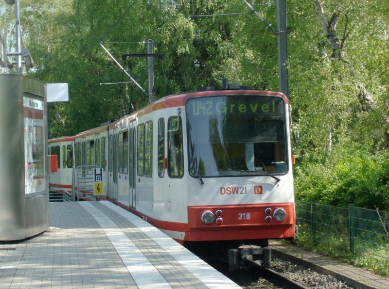 TW318(Dsw21) an der Endhaltestelle Grotenbachstraße auf den Weg nach Grevel am 20.04.09 .