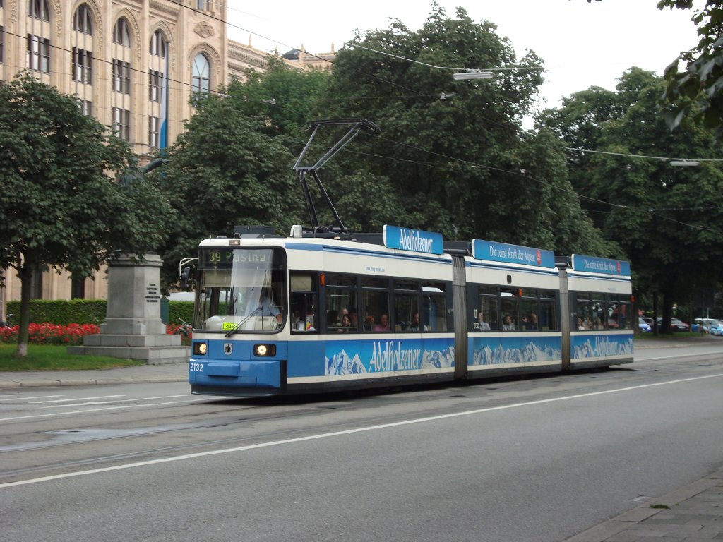 Eine Münchener Straßenbahn auf dem Weg in die Maximilianstraße