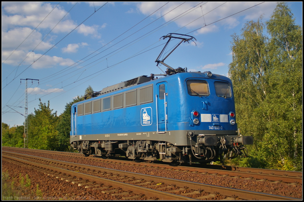 PRESS 140 038-0 / 140 851 solo am 28.08.2014 durch die Berliner Wuhlheide