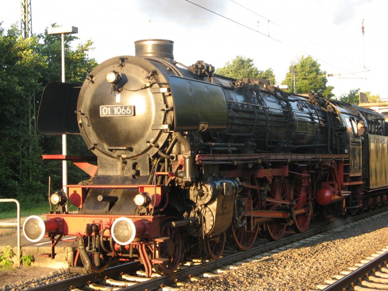 01 1066 mit einem Sonderzug nach Borkum, aufgenommen am 30.05.09 um 06:12 Uhr in Appelhülsen