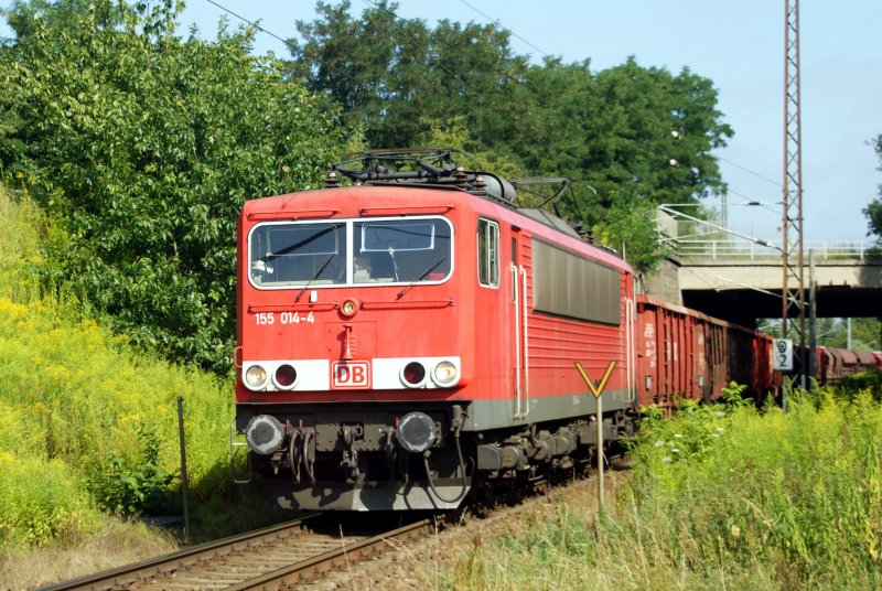 155 014 mit mit gemischten Güterzug kurz vor Bhf. Blankenfelde bei Berlin