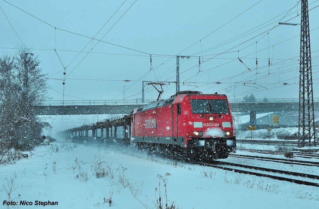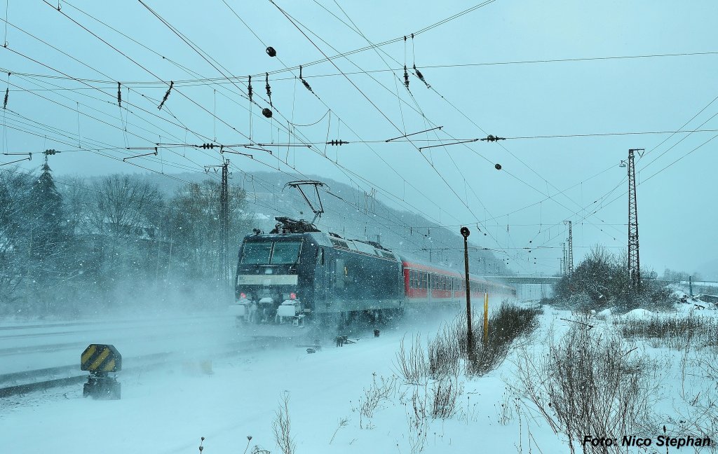Wenige Minuten nach dem Gegenzug,lässt 185 557-6 mit RE 4635 Frankfurt(Main)Flughafen Regionalbahnhof - Würzburg Hbf,mich ganz schön im Schnee stehen :) ,Gemünden/Main (Fotourlaub Gemünden 01.02.10)