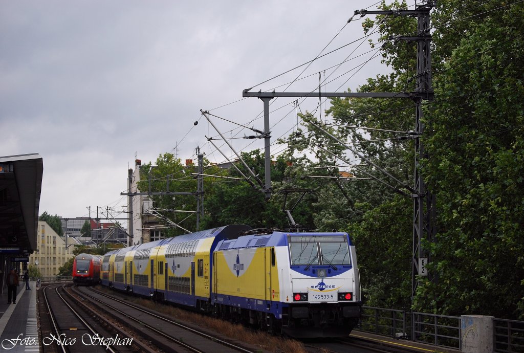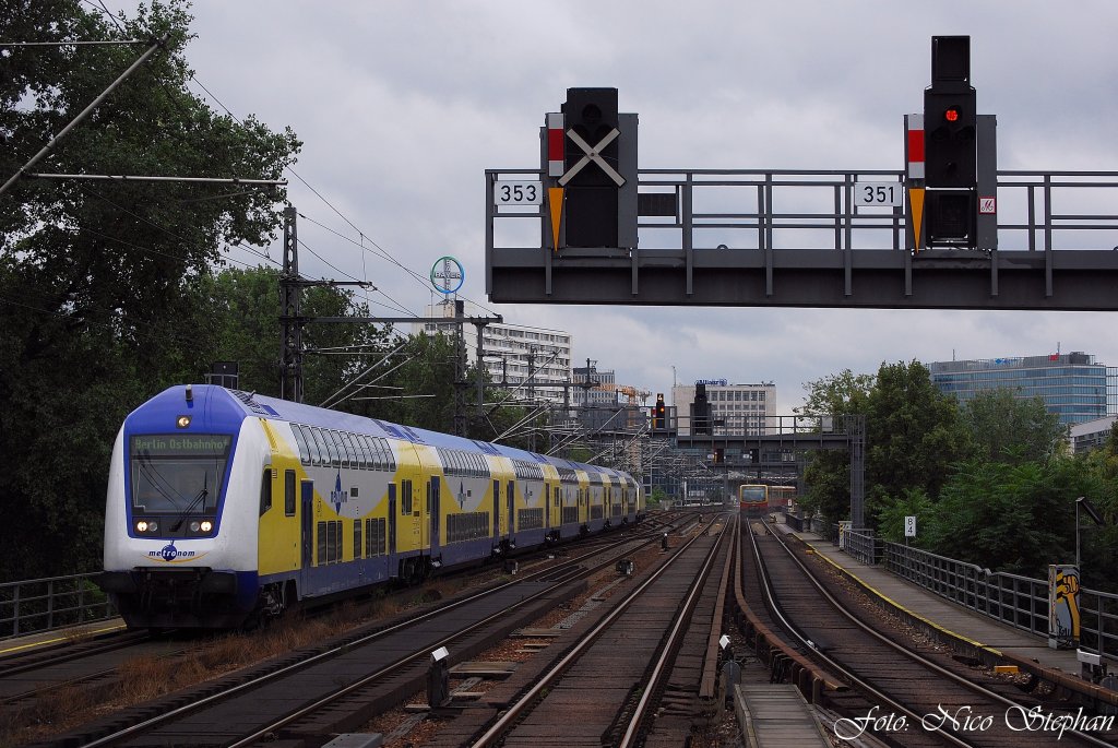 Mittlerweile auch ein fast schon gewohnter Anblick in Berlin,die Sonderfahrten des erfolgreichen Metronoms in die Bundeshauptstadt. Hier hat der Sonderzug aus Rotenburg soeben den Bahnhof Berlin Zoo verlassen,um seinem Endbahnhof Berlin-Ostbahnhof zuzustreben,S-Bhf. Tiergarten (05.09.2009)