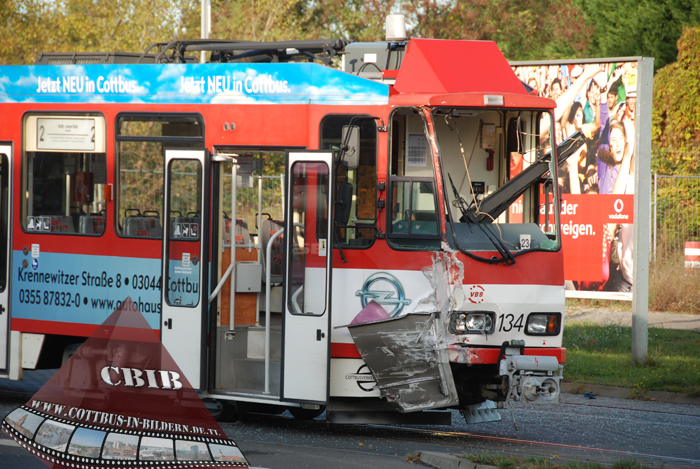 Straßenbahn Nr. 134 Unfall: Straßenbahn fährt in einen Linienbus.