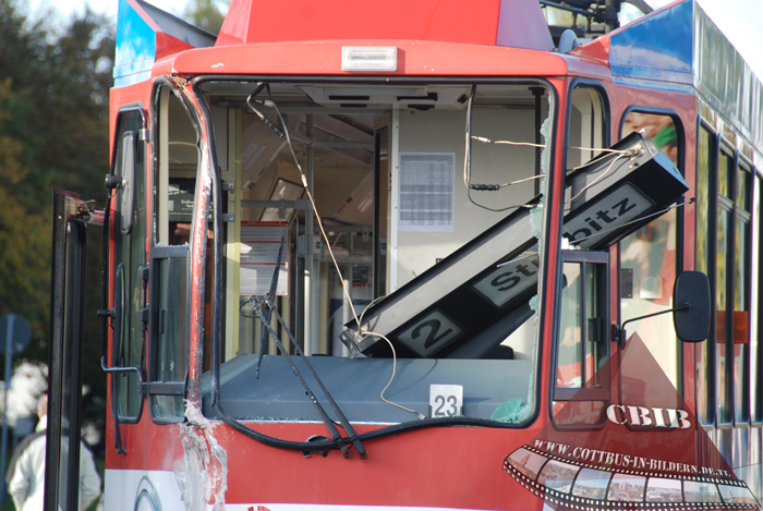 Unfall: Straßenbahn fährt in einen Linienbus.