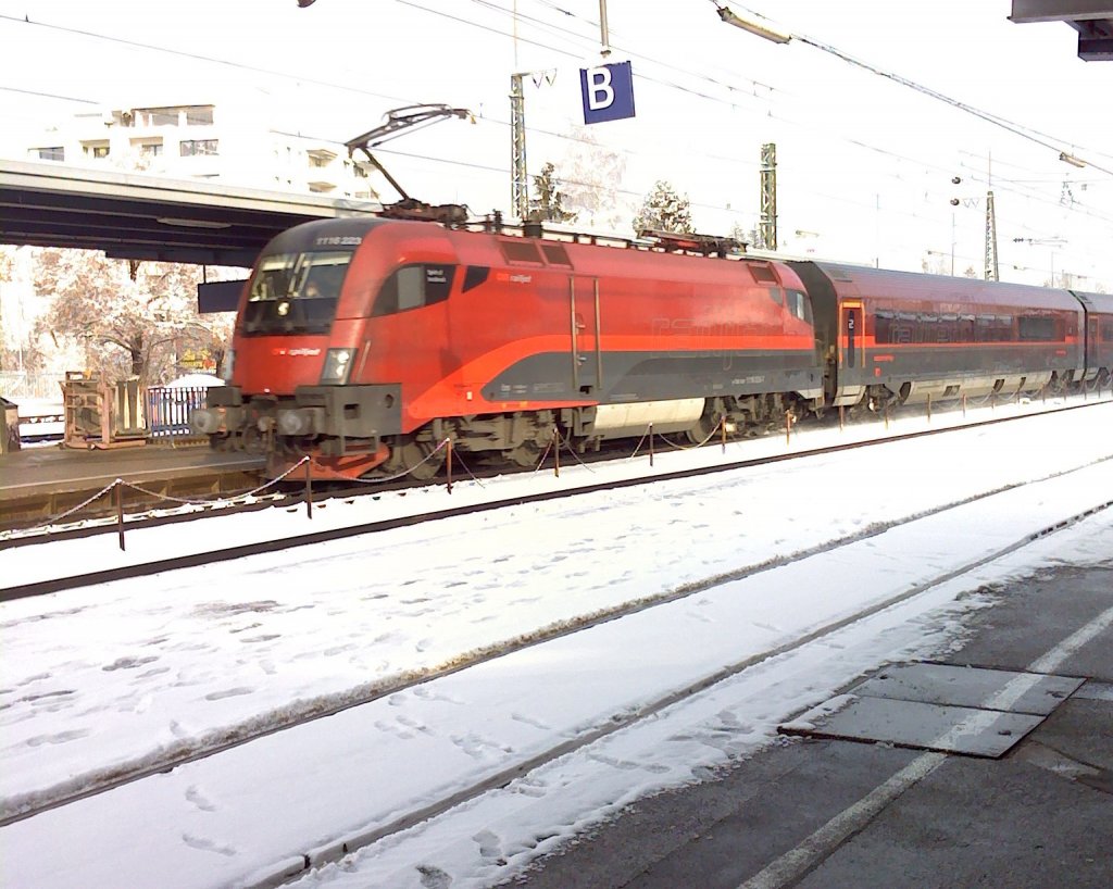 Die Railjet-Lok 1116 223 im Bahnhof Traunstein