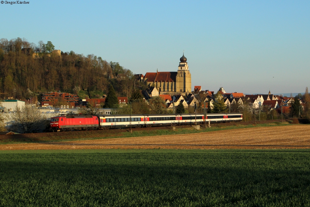 Schiff und Zug vereint. Als dieses Schiff in das Bild fuhr , tauchte im richtigen Moment eine BR 482 aus dem Roßstein-Tunnel auf. Oberwesel, 18.04.2015. Gregor Kaercher