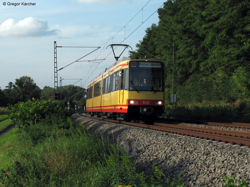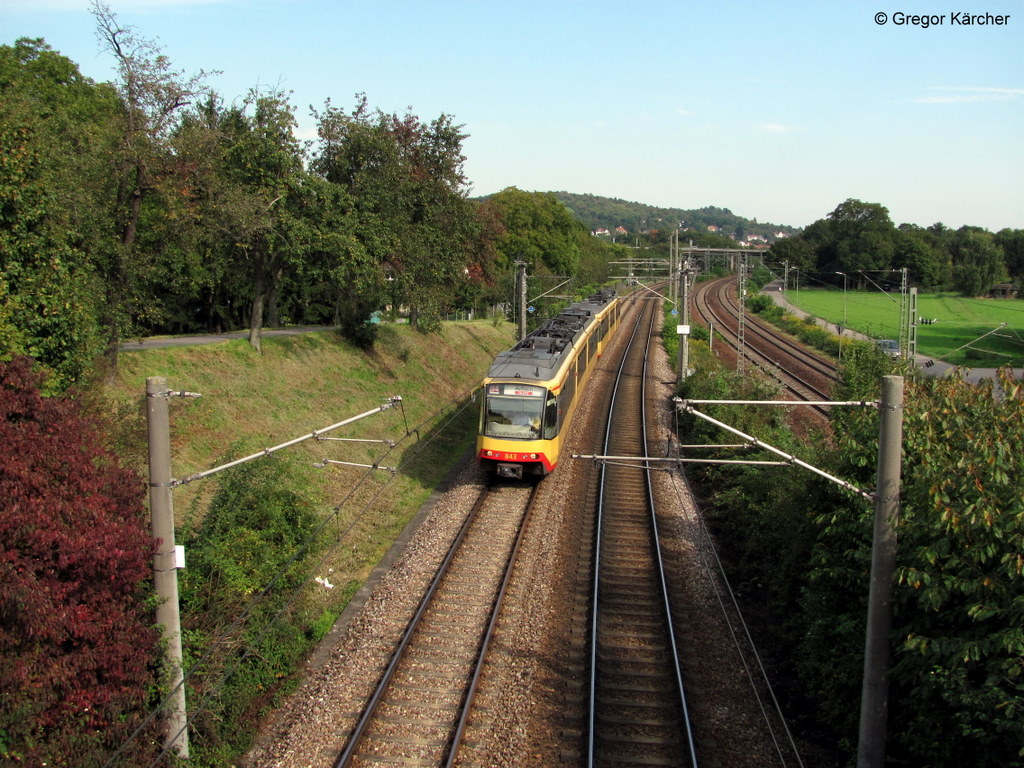 23.09.2010: TW 843 und TW 8?? als S4 Eilzug von Heilbronn nach Achern. Hier haben Sie soeben die Systemwechselstelle zwischen KA-Grötzingen und KA-Durlach passiert.