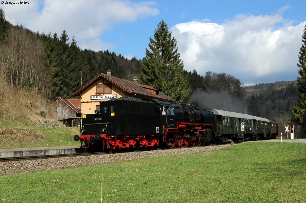 Parallelfahrt bei den Rottweiler Dampfloktagen. Rechts 52 7596 mit dem DPE 90166 (Rottweil-Spaichingen), links die 75 1118 mit dem DPE 90156 (Rottweil-Schwenningen). Aufgenommen in Rottweil-Saline am 04.10.2014. Gregor Kaercher