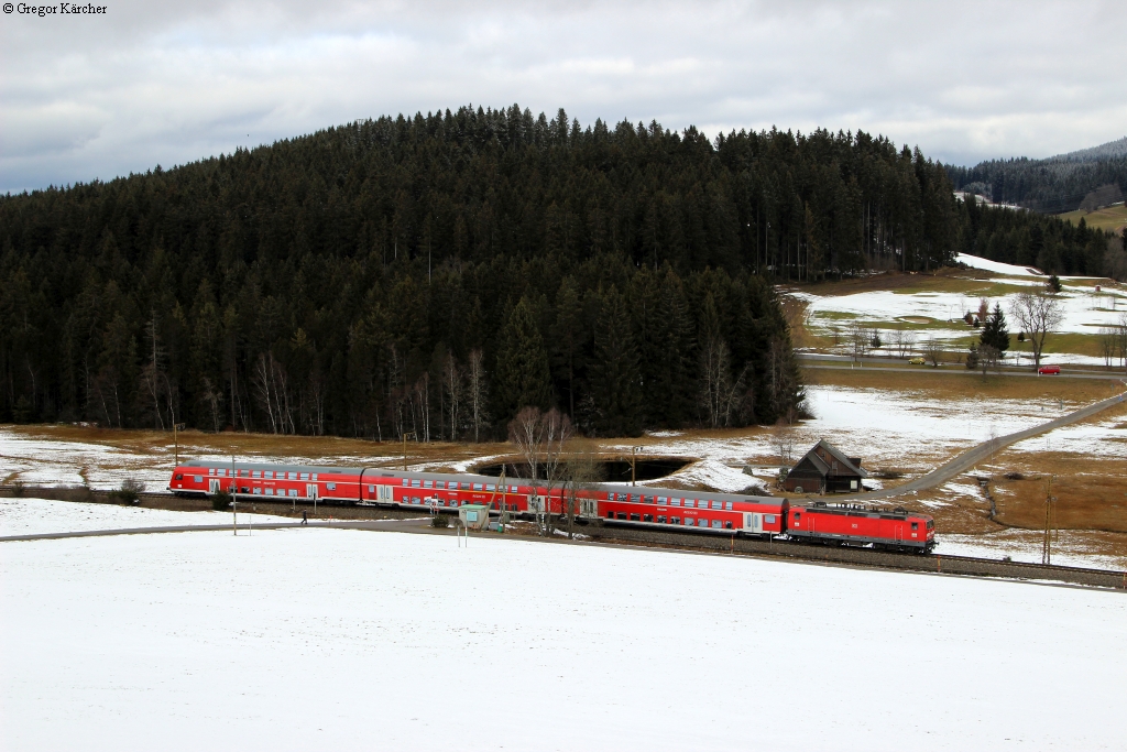 Im ersten Tageslicht fährt 425 3** als RE 19081 (Stuttgart-Freudenstadt) den Stockerbachviadukt bei Dornstetten. Aufgenommen am 06.01.2013. Gregor Kaercher