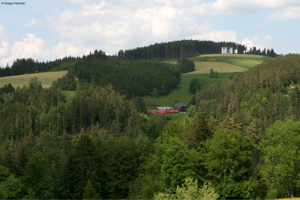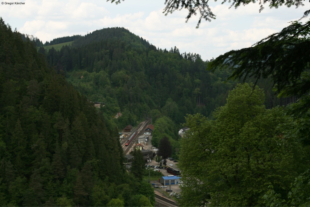 Zum Triberger Schinkenfest 2013 setzte die SVG Stuttgart einen Sonderzug von Renningen nach Triberg ein. Am 08.06.2013 konnte die ES 64 F4 031 (E 189 931) mit dem diesem Zug (DPE 75905 Renningen-Triberg) am stillgelegten Haltepunkt Gutach aufgenommen werden. Gregor Kaercher