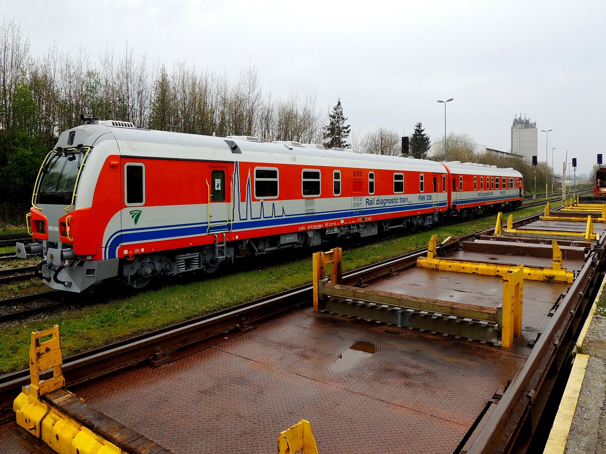 Rail diagnistic train FMK008, 99 55 6160 008-6(H-KFV); bei einem kurzen Zwischenhalt im Bhf. Ried; 230419