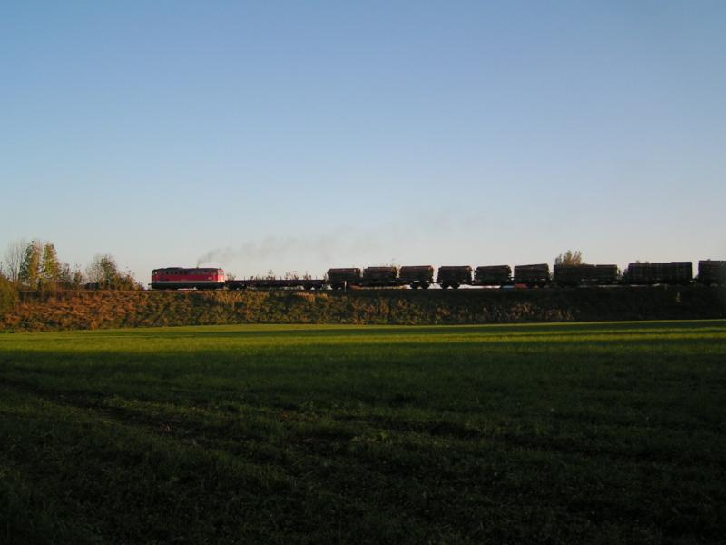 2043 048-4 mit schwerem Güterzug Richtung Wels in der abendlichen Herbstsonne des 18.Okt.2005 (Ausfahrt Ried i.I. )