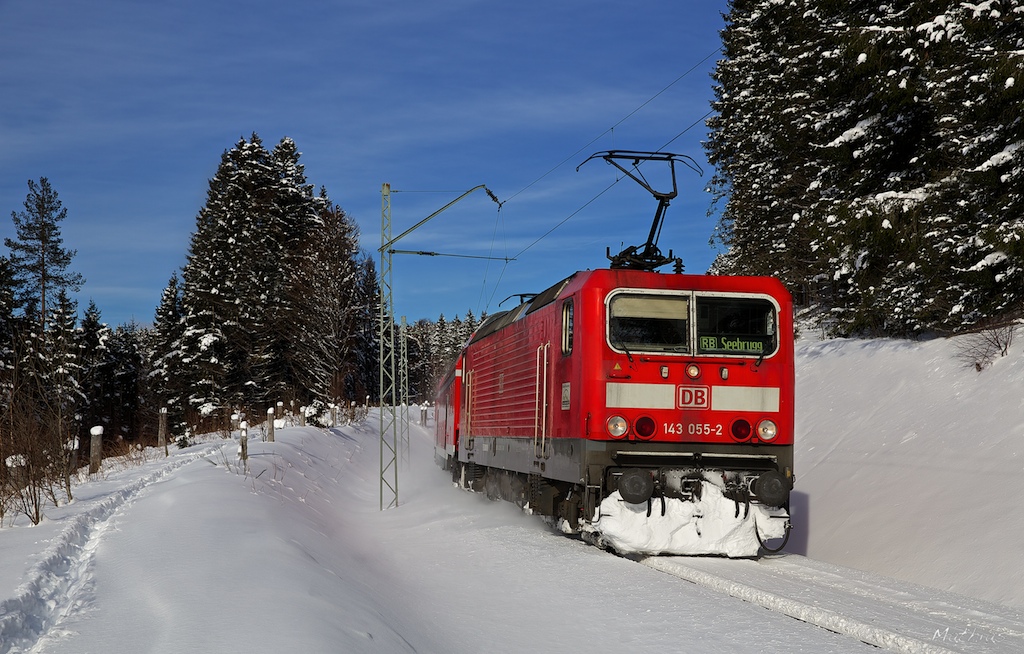 Sehr viel Schnee auf der Dreiseenbahn. Heute mal ein Foto von der Dreiseenbahn (KBS 728) am 10.Feb.2013. Der Schnee lag Teilweise bis zu einem Meter hoch, somit war es relativ zeitaufwendig an die Fotostellen zu kommen. Das Foto ist beim Windgfällweiher entstanden, mit 143 055 in Richtung Seebrugg. Mathias D.