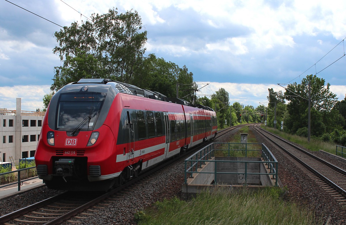 Als Regionalbahnersatz kommt am 30.05.2015 der 442 116 mit der RB 17221 (Zwickau (Sachs) Hbf - Dresden Hbf) in den Haltepunkt Zwickau-Pölbitz gefahren.