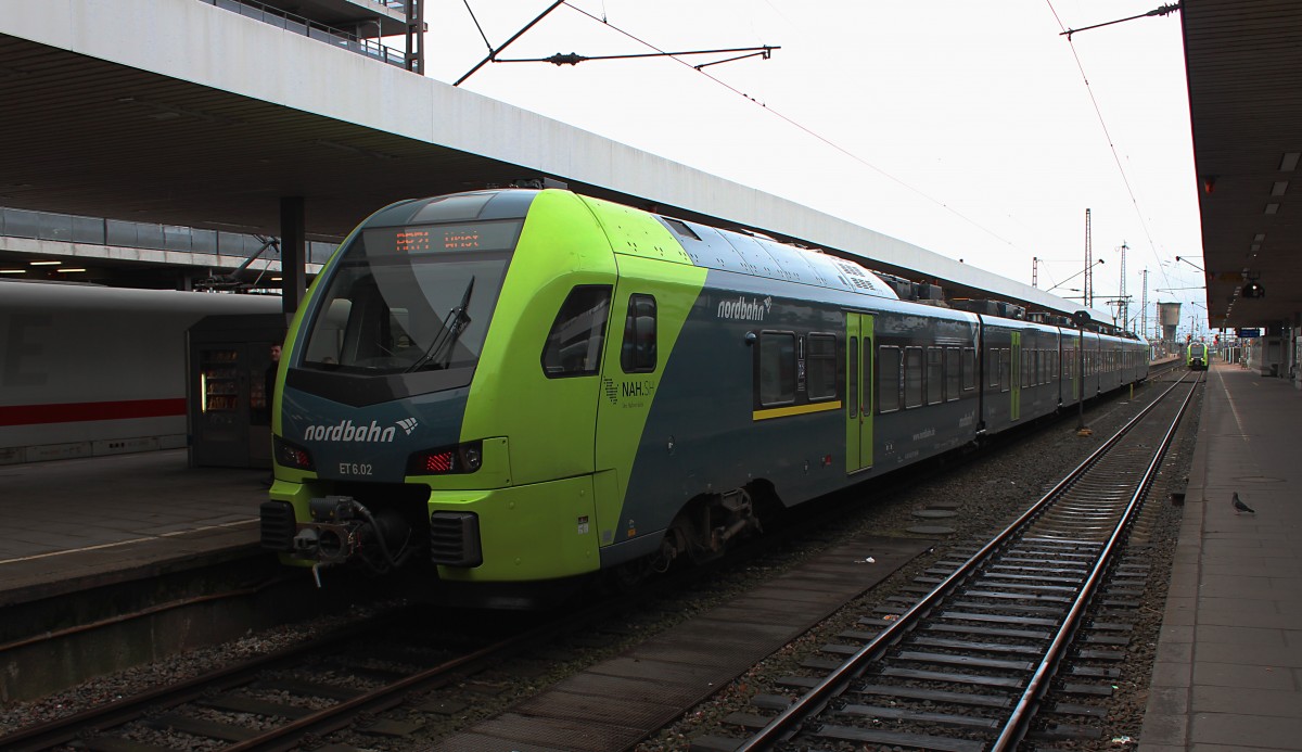 Der ET 6.02 (1 430 037) von der Nordbahn steht am 21.03.2015 mit dem NBE 83814 (Hamburg Altona - Wrist) in Hamburg Altona und wartet auf die Abfahrt nach Wrist.
