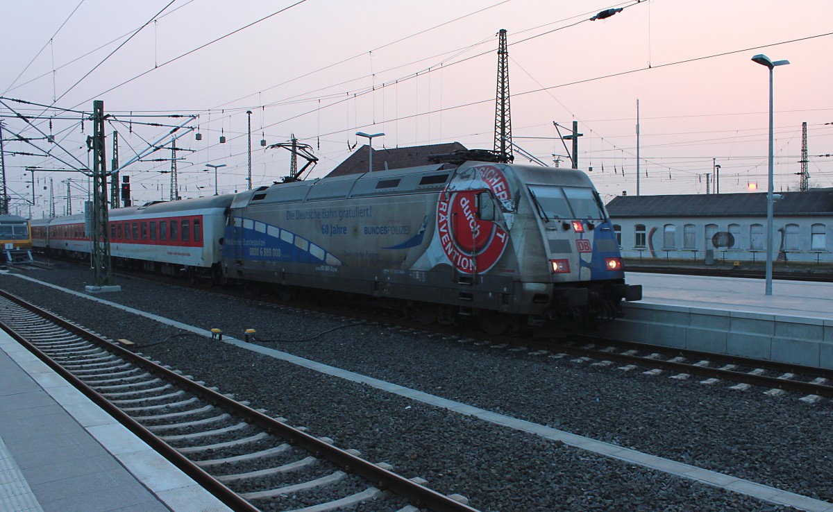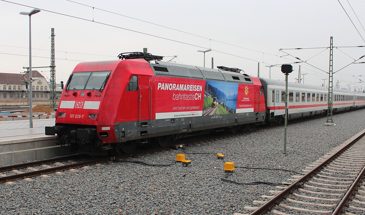 Die 101 029-7 brachte am 21.03.2015 den IC 2039 aus Emden Hbf nach Leipzig Hbf, dieser Zug endete in Leipzig. kurz danach brachte eine Rangierlok den IC in die Abstellung.