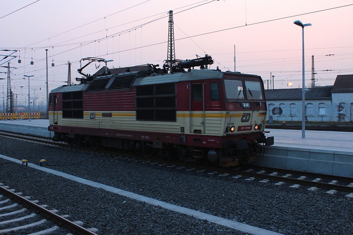 Die 371 015-9 "Vaclav" übernimmt am 21.03.2015 den CNL 459 (Zürich HP - Praha hl.n.) in Leipzig Hbf und fährt ihn weiter nach Prag.