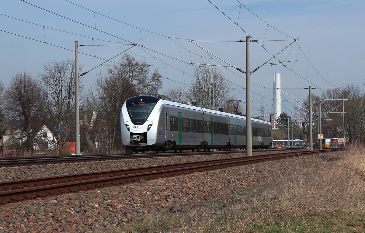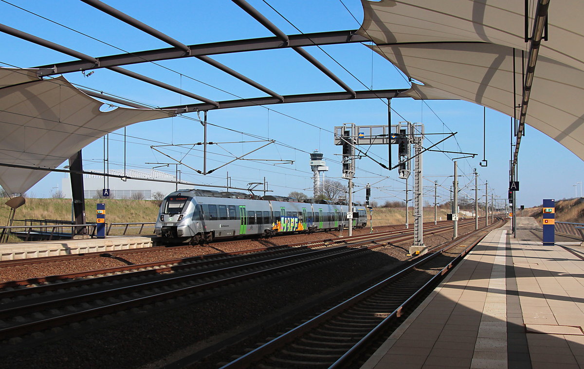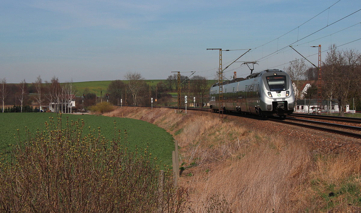 Am 01.04.2017 passiert 411 060-7 "Markt Holzkirchen" mit dem ICE 1549 (Frankfurt (Main) Süd - Leipzig Hbf) gleich den Bahnhof Leipzig/Halle Flughafen.