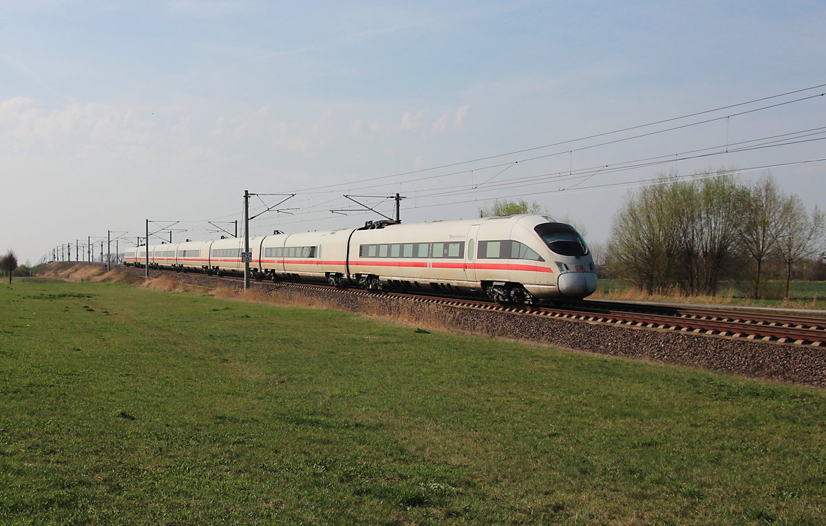 Am 01.04.2017 durchfahren 411 032-6  Wittenberg  und 415 005-8  Marburg  mit dem ICE 1566 (Dresden Hbf - Frankfurt(M) Flughafen Fernbf) Leipzig/Halle Flughafen.
