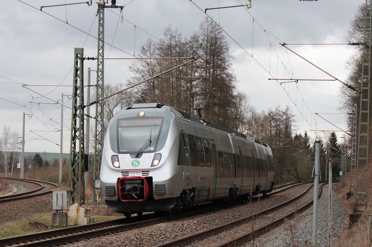 1442 602 fährt am 15.03.2014 mit der S5 nach Leipzig/Halle Flughafen durch die Ortslage von Gößnitz und wird gleich selbigen Bahnhof erreichen. Matthias Hartmann